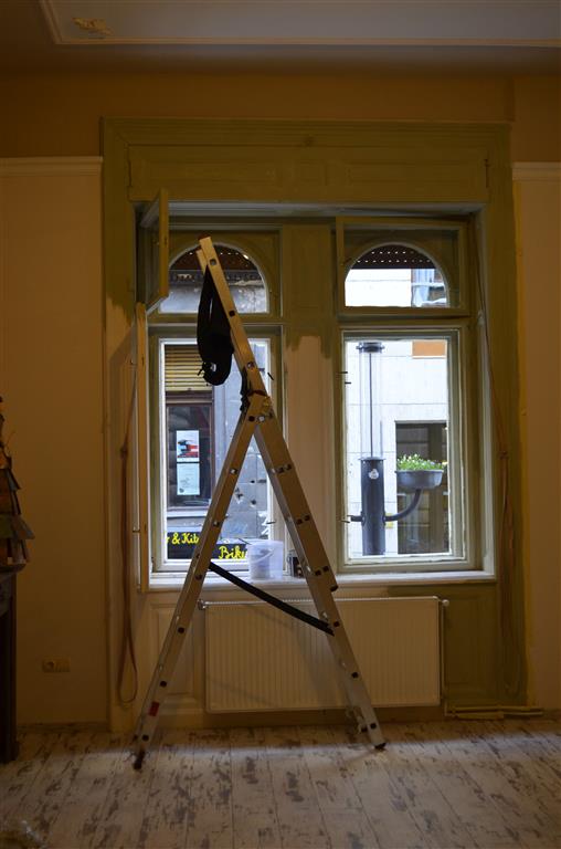 Az ablakokon sok-sok réteg festék, melynek a teljes felújítása (értsd: több réteg festék lecsiszolása, a hiányzó részek pótlása, újraüvegezése ) horribilis összegekre rúgott volna.