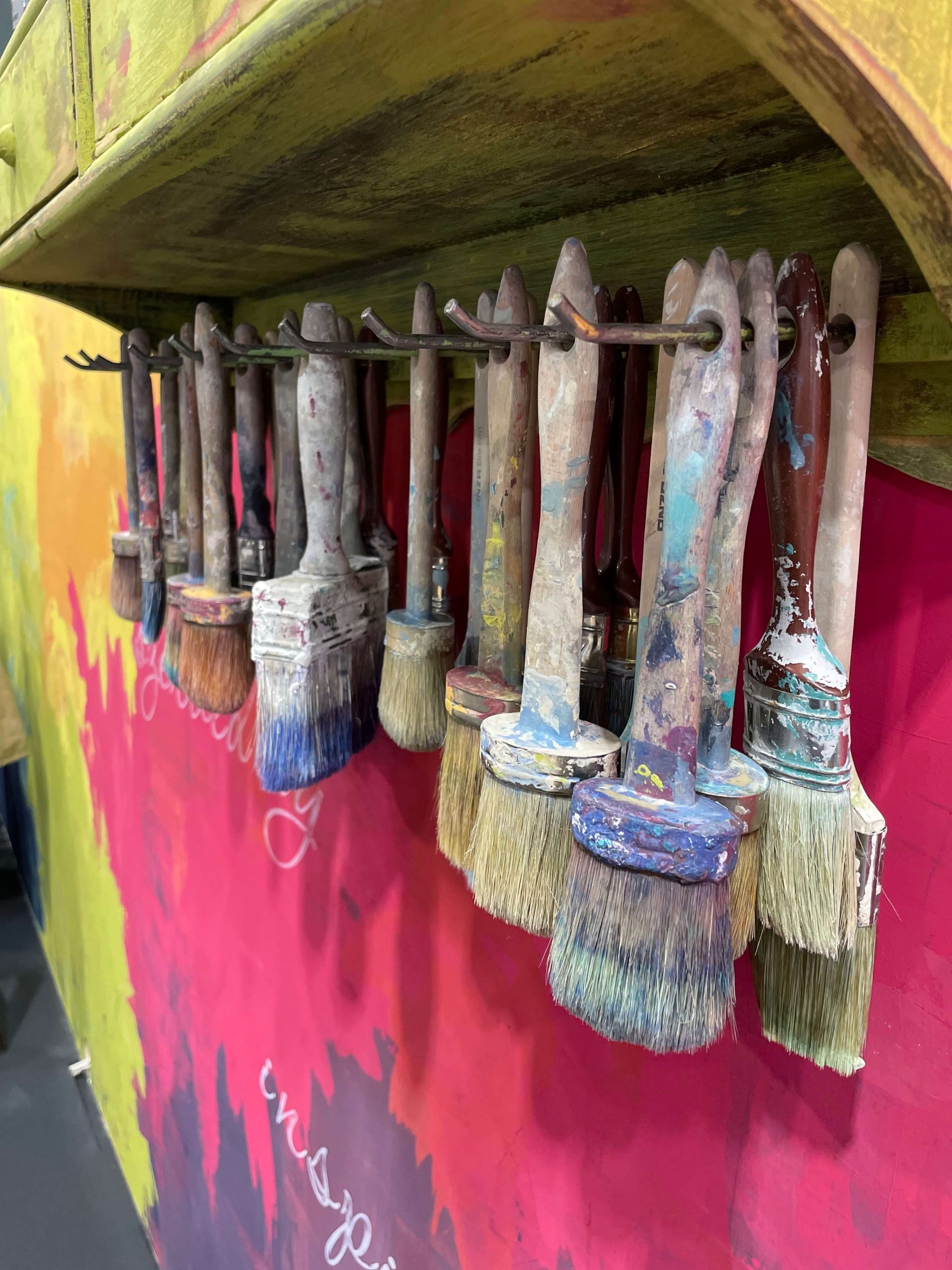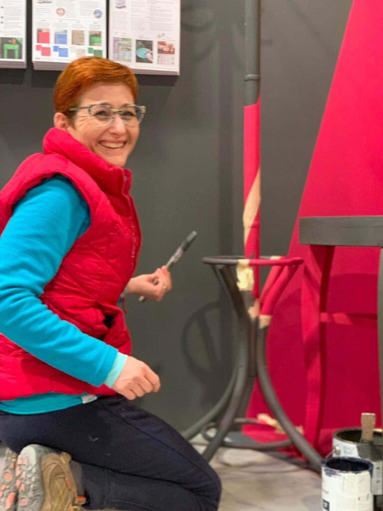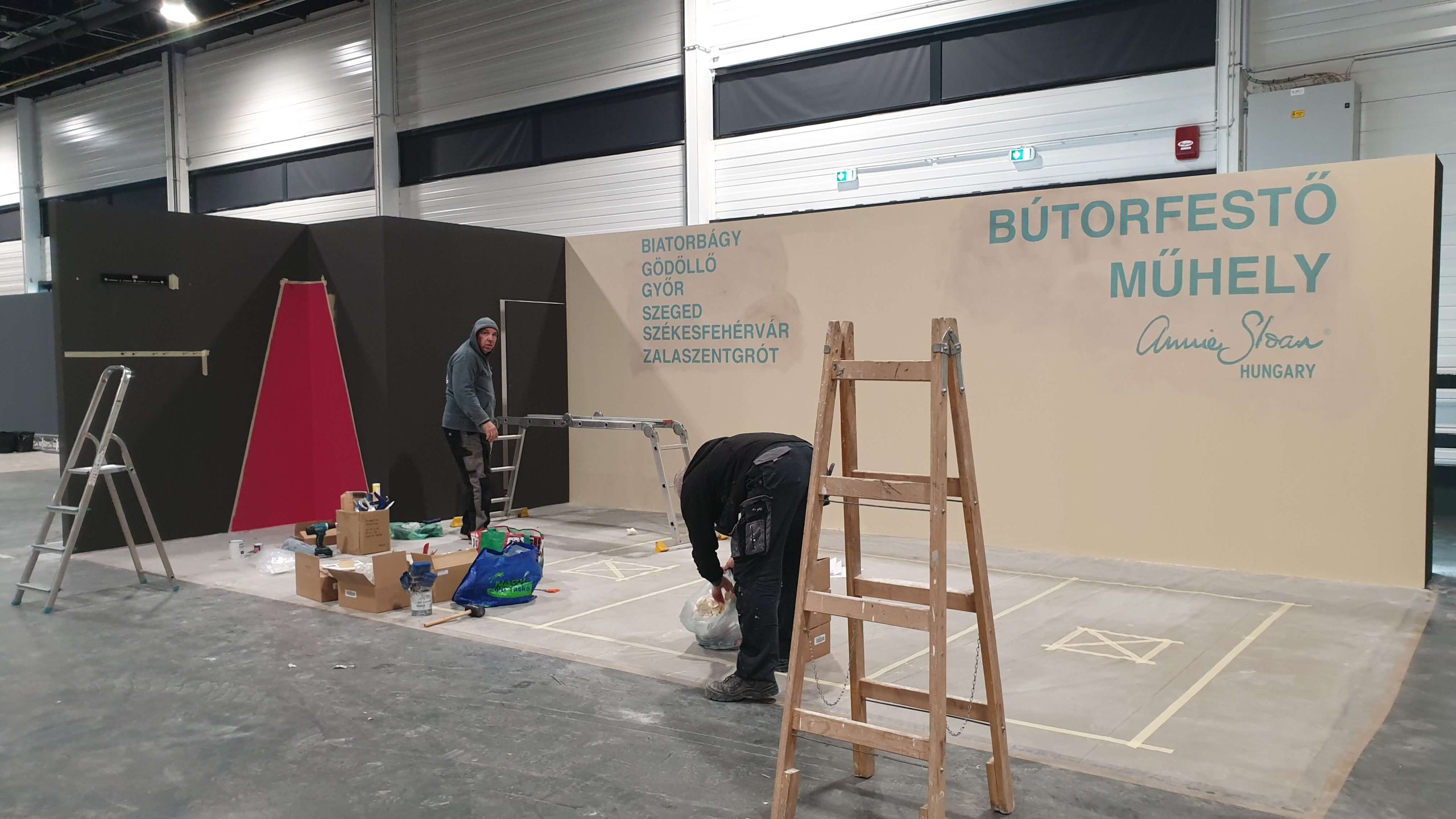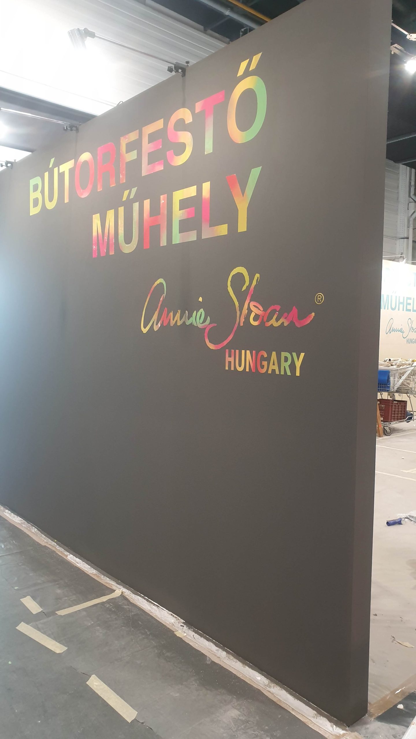 A találkozások feltöltenek, az 5 nap talpon lét – megspékelve előtte jó pár hét előkészülettel – pedig igazán le is szívja az ember energiáit. Ahogy a szeptemberi S/alon kiállításra, a 2022-es Construmára is egy különleges standdal készültünk, természetesen Annie Sloan festékekkel. A kezdeti Pinterest bújós, inspirációs szakasz után bevontam átadtam a szakmai irányítást – Nemes-Gergely Erikának, Az Asztalom Annie Sloan forgalmazójának. Erika látásmódja igazán egyedivé, kifinomulttá, mégis kellően bohémmá tette a stand megjelenését. Több mint 10 féle Annie Sloan Chalk Paint™ és több Wall Paint árnyalat felhasználásával a kivitelezés 3 teljes nap volt. Be kell valljam, már itt nagyon elfáradtunk 😀