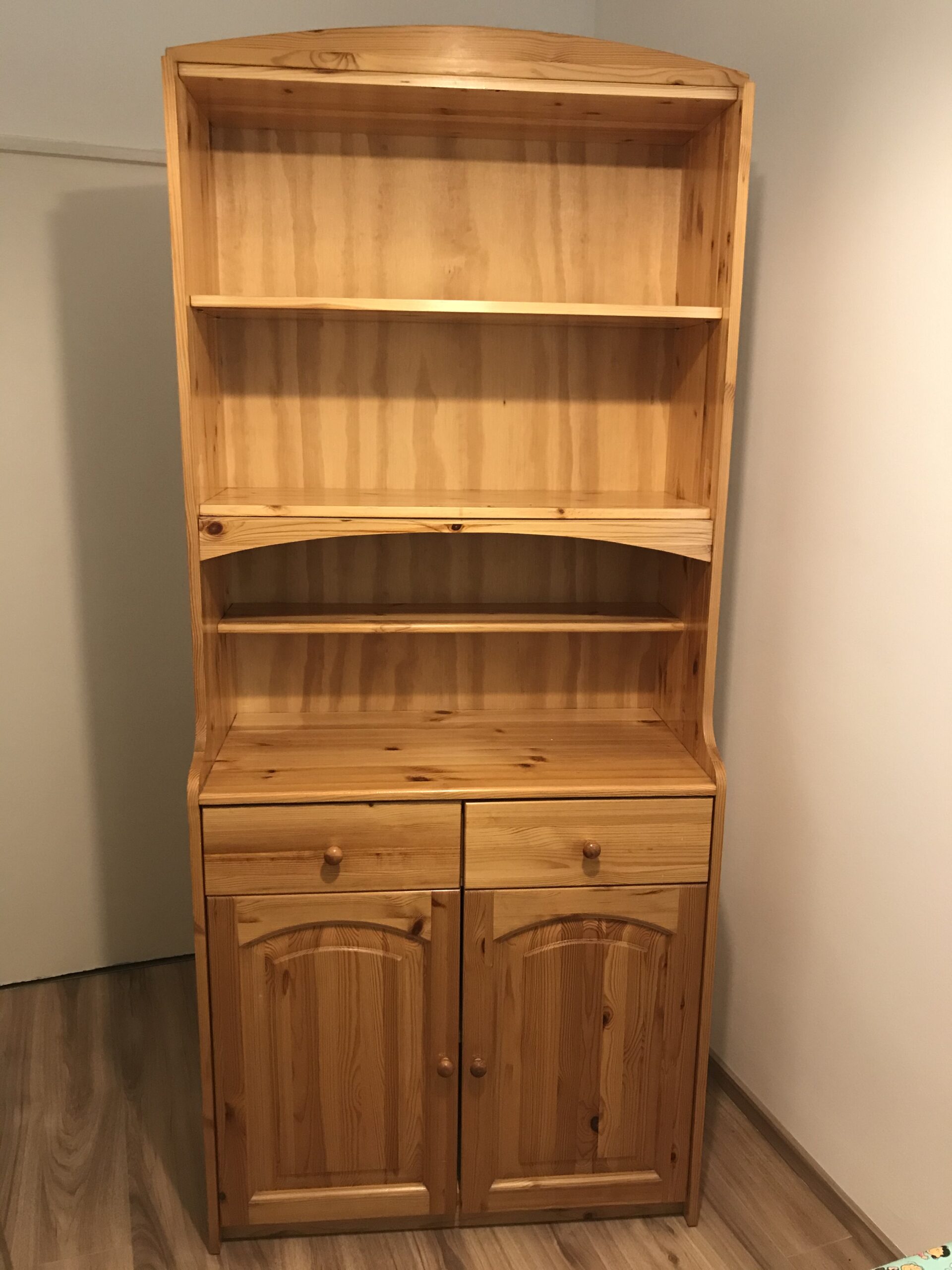 Világos bútorviasszal zárta az egész szekrényt. A fehér színűre festett részeket még sötét bútorviasszal is antikolta.