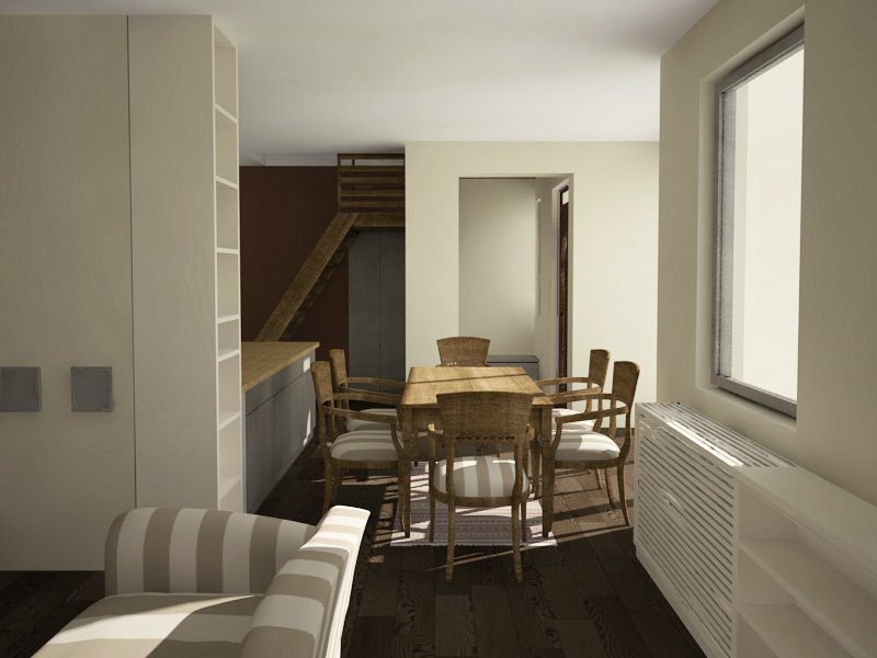 A nappali 3 dimenziós látképe az ebédlőből.