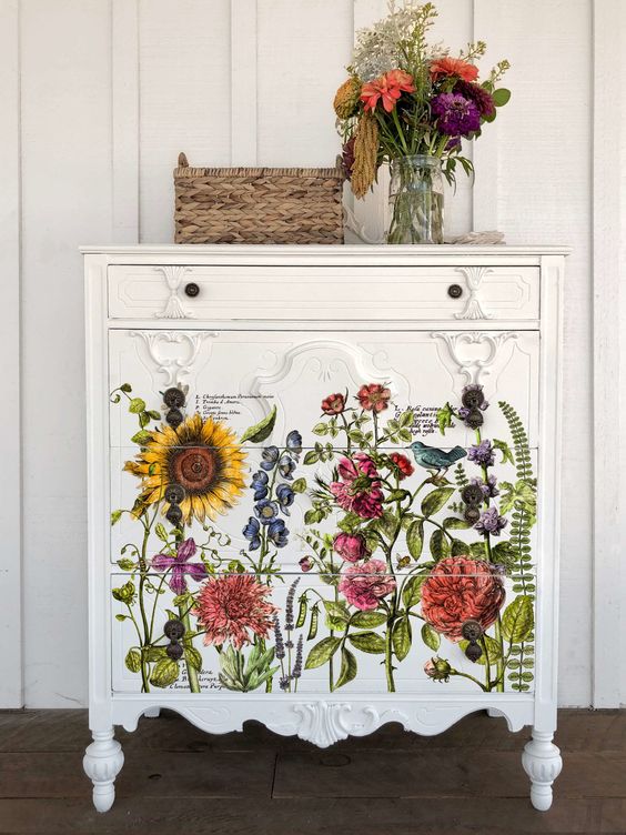 A festett felületre felvitt Botanist’s journal dekor transzfert ugyanúgy zárni kell Clear Chalk Paint Waxszal vagy Chalk Paint lakkal.