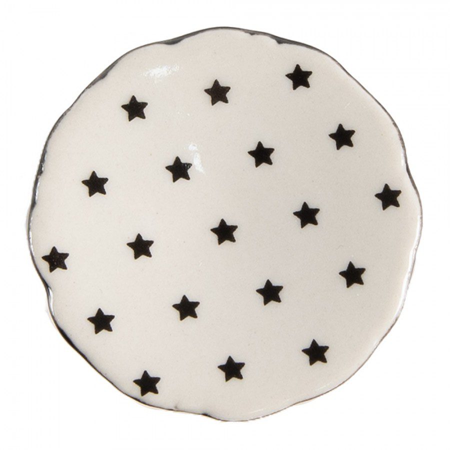 Bútorgomb bézs alapon fekete csillagok, kerámia