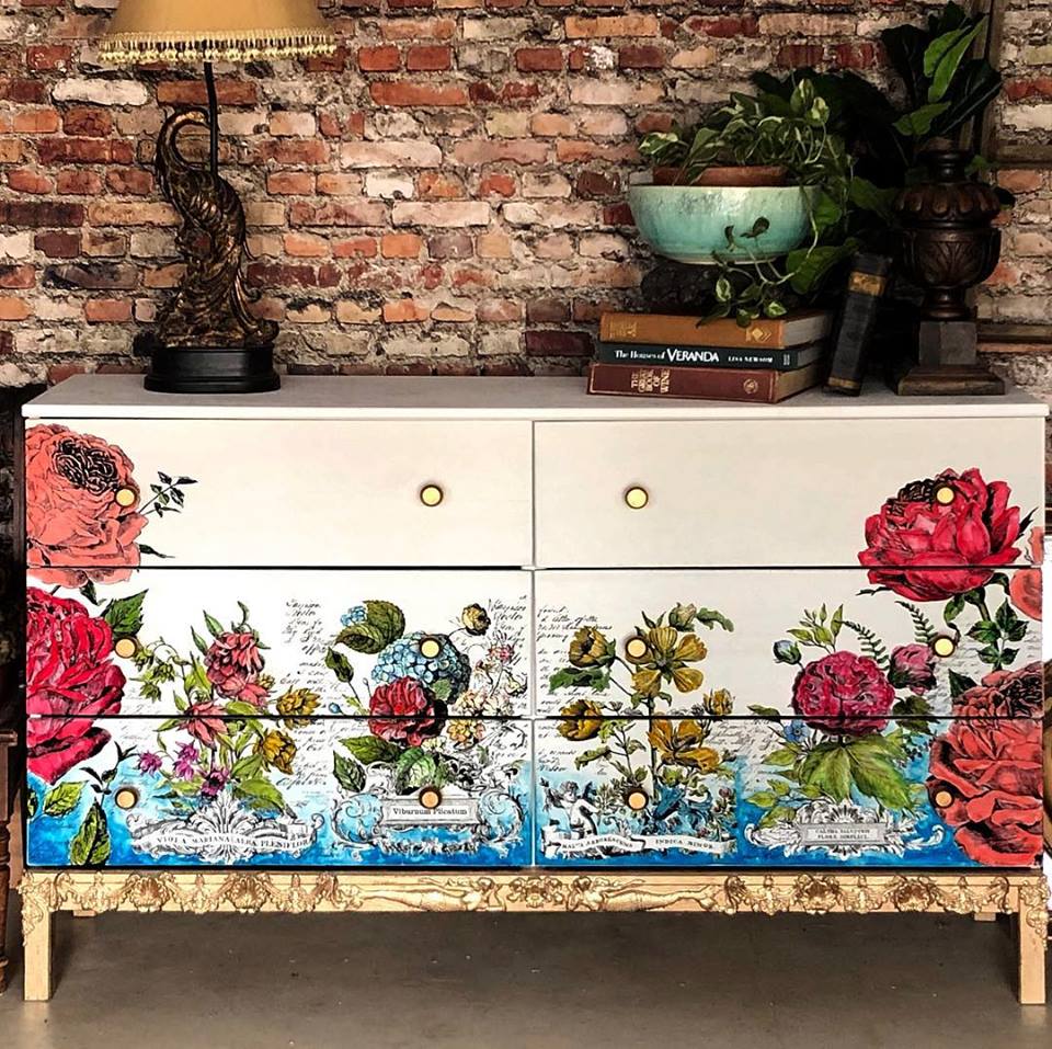 A festett felületre felvitt Classic bouquets transzfer ugyanúgy zárni kell Clear Chalk Paint Waxszal vagy Chalk Paint lakkal.