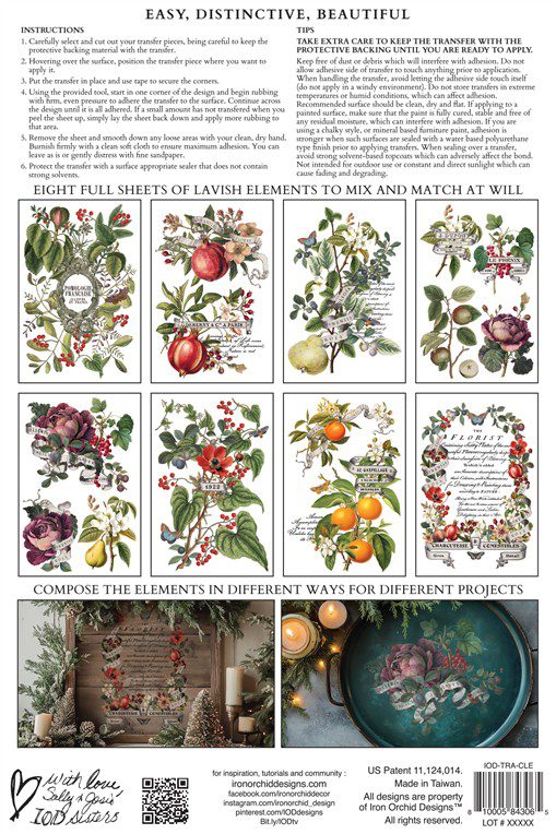 A Clementine dekor transzfer 8 db transzferfóliát tartalmaz, amivel egyszerűen dekorálhatod bútoraidat!