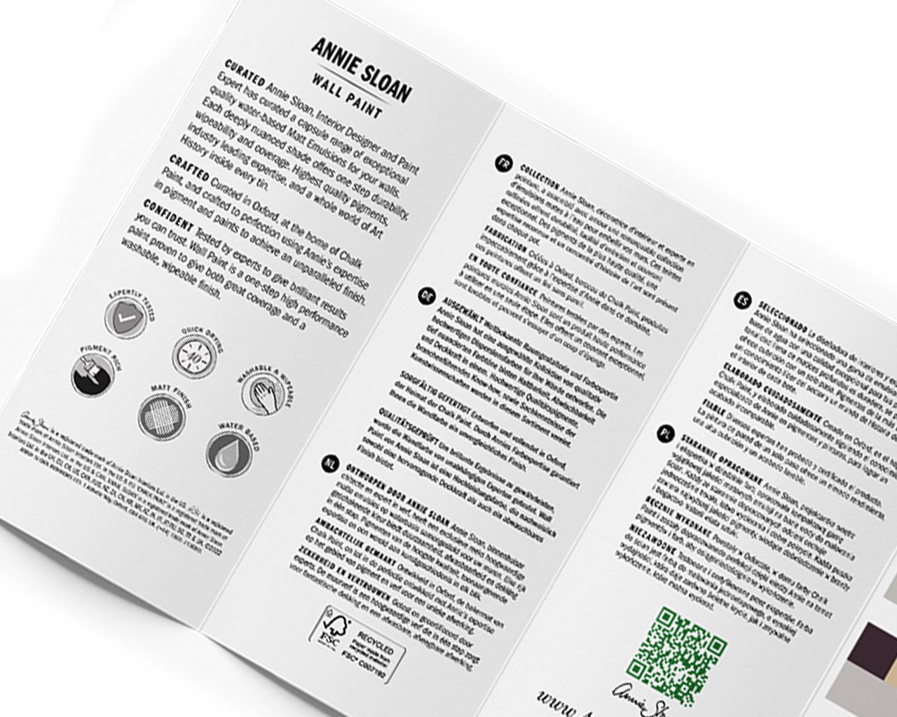 Az Annie Sloan falfesték kollekció egy prémium minőségű, csodás 32 színből álló falfesték válogatás, egy kivételes minőségű, vizes bázisú és csodás matt hatást nyújtó, mosható, súrolható falfesték. A Falfesték és Satin Paint színkártya egyrészt ezt a 32 színt tartalmazza.