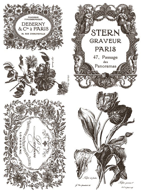 A Floriography Paint Inlay egy sikkes, franciás csomag, tele szebbnél szebb korabeli címkével, felirattal, virággal, fekete-fehérben. Csodás dekoráció készíthető belőle a lakás minden pontján.