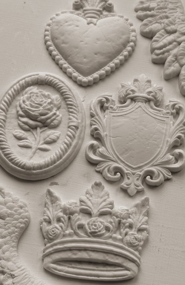 Minden IOD bútordísz öntőforma mély és részletes kialakítású – így a Heraldry bútordísz öntőforma is – és kiváló minőségű, természetesen az élelmiszeripari követelményeknek is megfelelő szilikonból gyártják, így akár sütőbe is teheted.