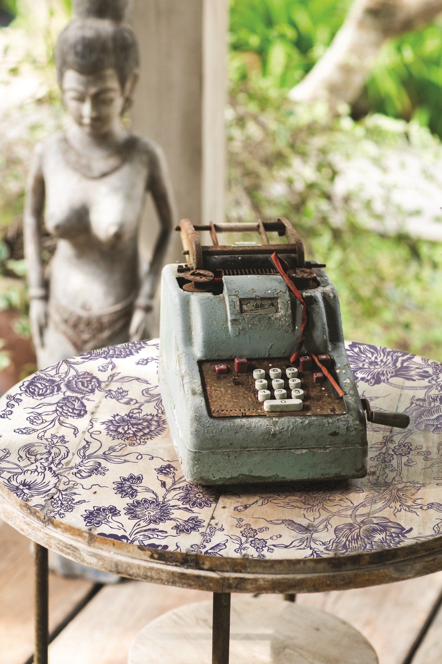 Az Indigo Floral Paint Inlay egy vékony csomagolópapír-szerű papírlap, termékenként különböző mintákkal, amit egy különleges festékkel hordtak fel a papír felületére, és használatakor ez a rajta lévő festék fizikailag beágyazódik az előzőleg Chalk Paint festékkel lefestett felületbe. Száradás után, a hordozópapírt eltávolítva egy autentikus, festett dizájn, egy szinte bőrszerű felület marad a munkadarabon.