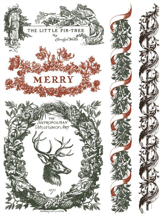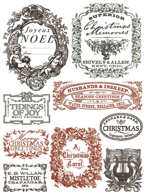 A Twelfth Night Paint Inlay vintage karácsonyi cimkéivel, fekete-fehér-piros színével békebeli hangulatot hoz az enteriőrbe.