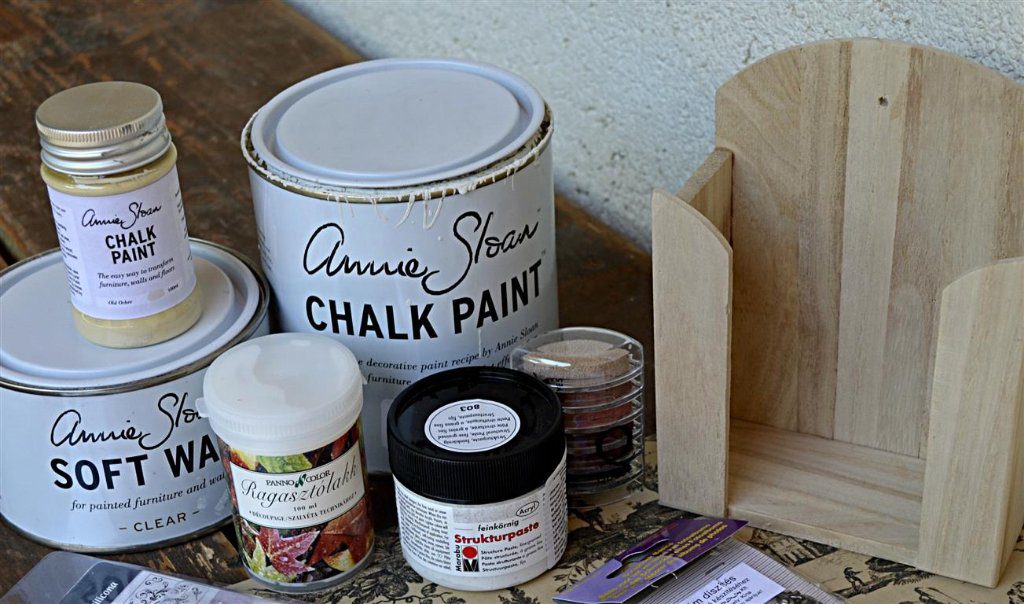 A hobbiboltban, ahol jártam rengeteg inspirációt lehet meríteni, én is onnan vettem az ötleteket (meg persze az eszközöket), hogy mit is csináljak egy natúr zsepitartóval. A tulajdonos gyönyörű tárgyakat készít az általa forgalmazott eszközök, anyagok felhasználásával, gazdagon díszíti azokat, ezen kívül megmutatja a technikákat, tanácsokat ad, sőt még tanfolyamra is lehet hozzájuk menni. Igazi ötletparadicsom az az üzlet!